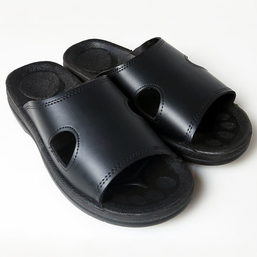 First, anti-static four-hole leather slippers: upper material: PVC leather / PU leather.