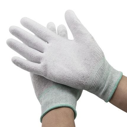 The anti-static coated gloves are made of nylon, and the palm is covered with a polyacid resin layer, which has strong wear resistance. The nail area is round to prevent pressure on the fingertips during operation. Long-fiber elastic nylon is used, which is not easy to generate dust and is suitable for cleaning work.