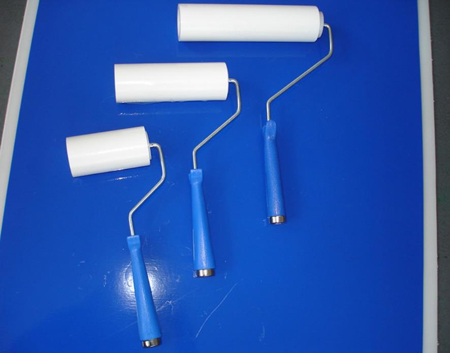 The sticky roller base material is made of polyethylene film, designed as a roller shape, pre-cut line is set on the sticky film, and the edge of the roller is peeled off for easy peeling; the colloid is a polyacrylate adhesive, which ensures no degumming, and is convenient to use with the handle; adopting PE The tube core is clean and non-polluting, and the drum is not deformed. The design of this product is advanced and reasonable, which can remove dust well and avoid the secondary pollution caused by traditional utensils such as rag, washing and broom. .